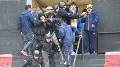 Los disturbios comenzaron por un cruce verbal, luego ambas hinchadas se lanzaron con butacas y a continuación los hinchas de Colón fueron en busca de los de Central.