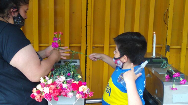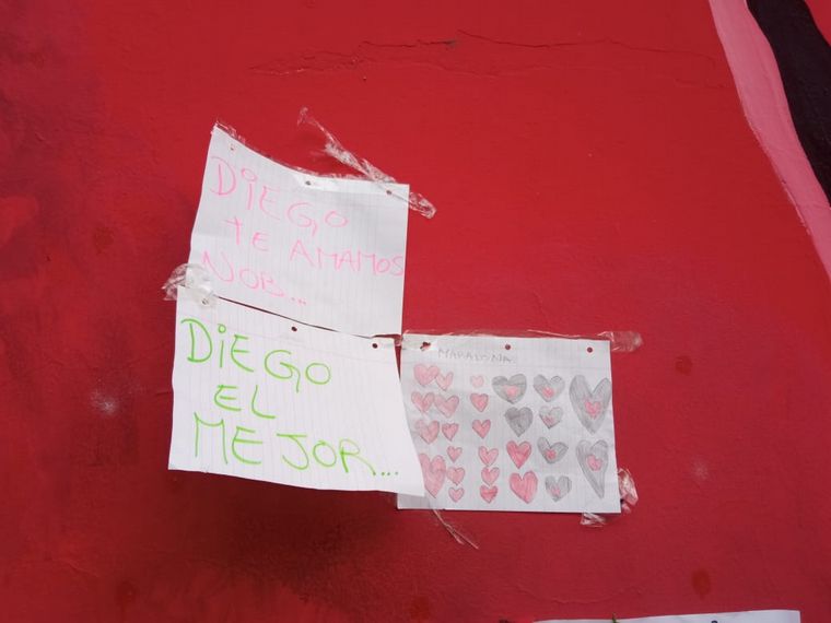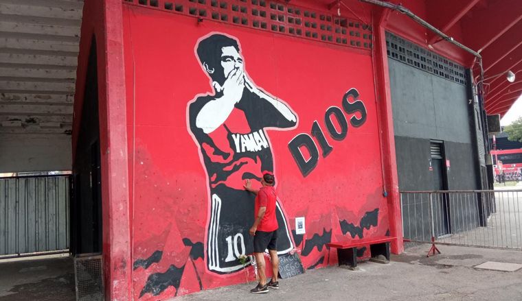 Otro grupo de fanáticos armaban un pequeño santuario debajo de un mural en uno de los laterales del estadio Diego Armando Maradona. "Diego es del barrio, del barrio La Paternal", entonaban un puñado de personas.