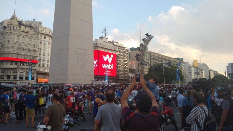 En el Obelisco porteño, un nutrido grupo de hinchas se congregó para expresar su cariño por el máximo ídolo del fútbol argentino.