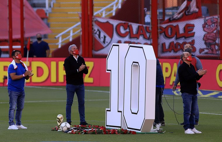 Allí se levantó un enorme número 10, a modo de altar, donde se depositaron las ofrendas que Independiente entregó a Raúl Maradona.