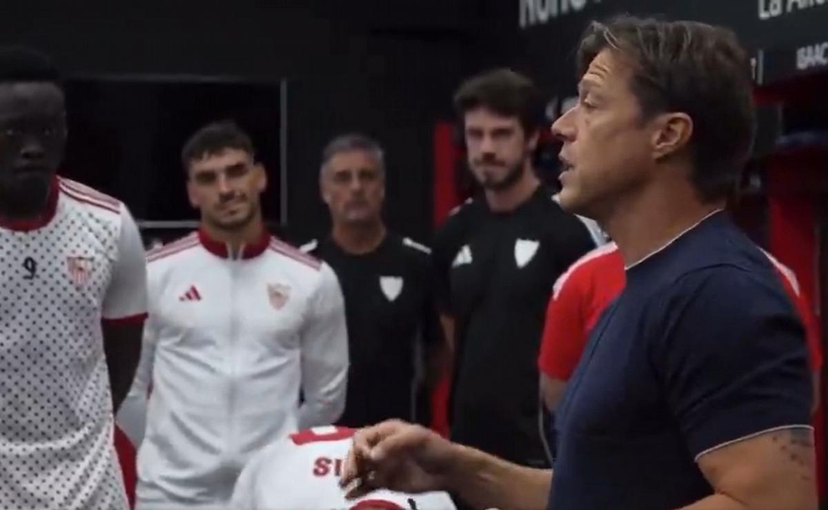 La emotiva arenga de Almeyda en la previa de la goleada del Sevilla al Barcelona