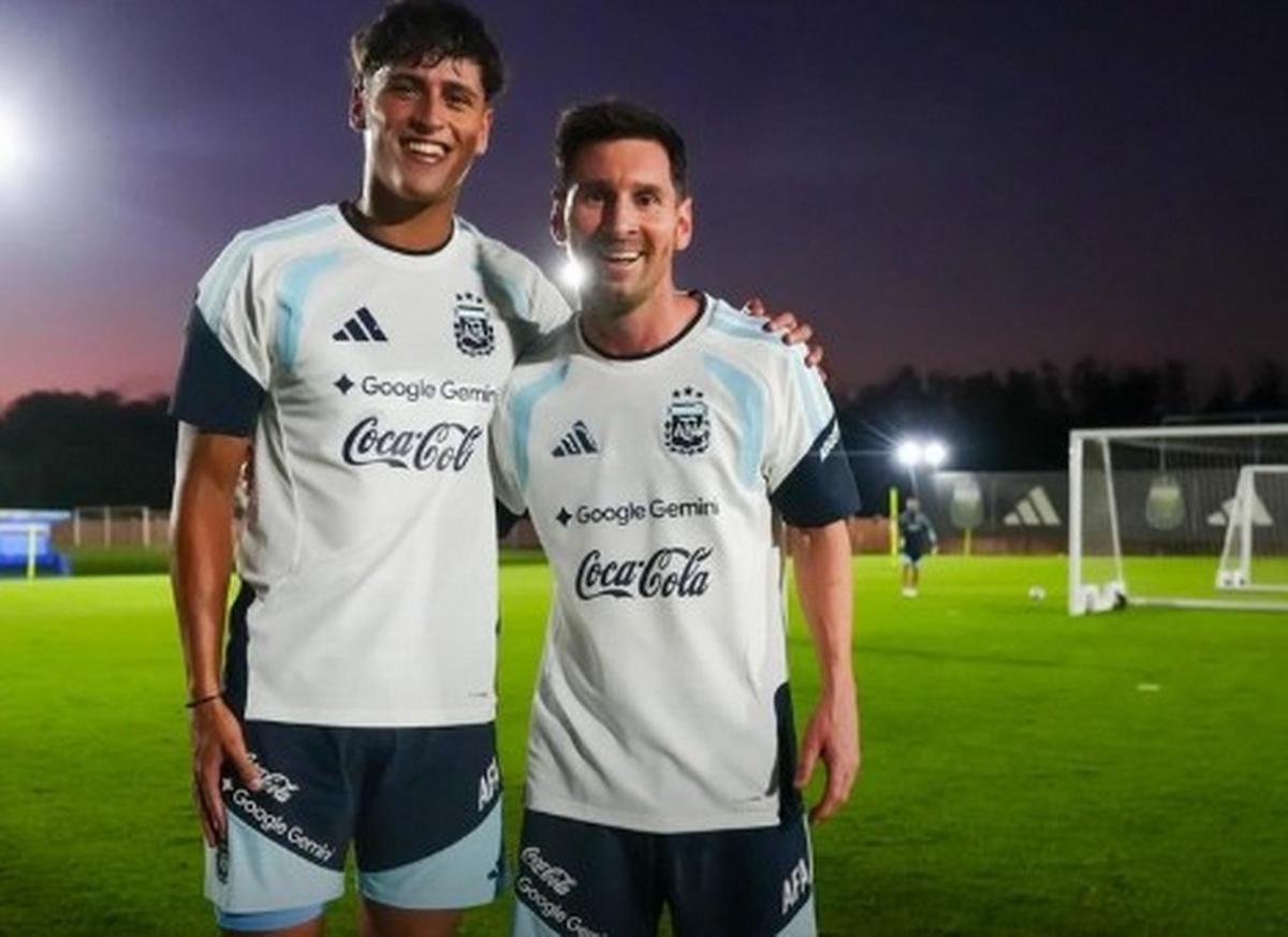 Se tomó una foto con Lionel Messi mientras entrenaba con la selección argentina sub-20.