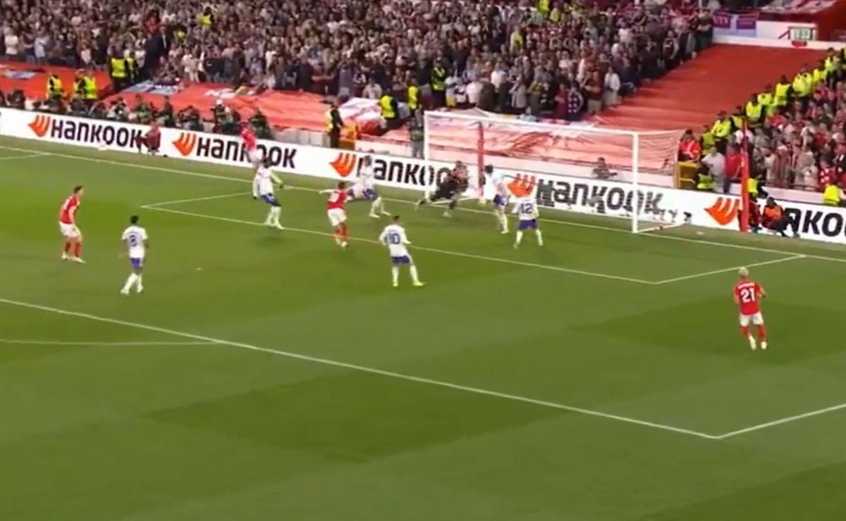 A los 32 minutos de la primera parte, el argentino le quitó el grito de gol a todos los hinchas del Nottingham Forest con una impactante atajada.