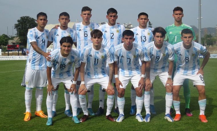 El seleccionado nacional, dirigido por Mascherano, formó con Francisco Gómez; Braian Aguilar, Lautaro Di Lollo, Nahuel Genez y Franco Carboni; Maximiliano González, Gino Infantino, Santiago Castro y Mateo Sanabria; Luka Romero; Matías Soulé y Alejandro Garnacho.