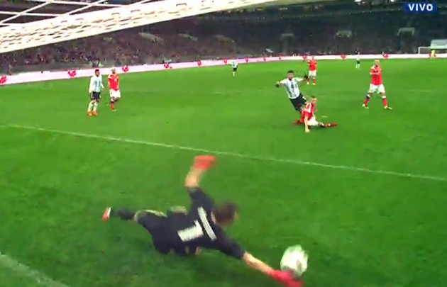La volea del Kun Agüero que el arquero ruso sacó de milagro