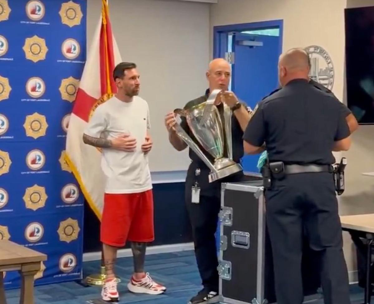 Messi llevó el trofeo de la MLS a la sede del Departamento de Policía de Fort Lauderdale.