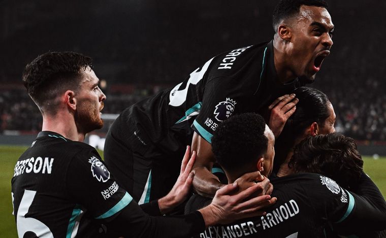 El Liverpool, con el argentino Alexis Mac Allister como titular, le ganó agónicamente 2-0 al Brentford, en condición de visitante, y se aleja en lo más alto de la Premier League.