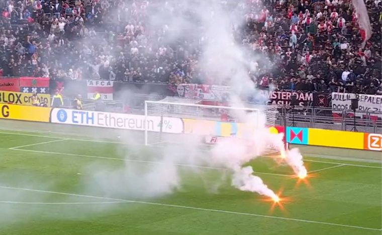 A los 10 minutos del segundo tiempo, el árbitro del encuentro decidió suspender el partido después de que los hinchas del conjunto local tiraran bengalas al campo de juego. El Ajax perdía 3-0.