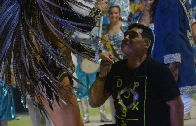 "El 10" bajó de su palco donde participaba de la celebración en el corsódromo Nolo Arias, en compañía de sus hermanos y se animó a algunos pasos de baile junto con algunas de las más bellas bailarinas cariocas.
