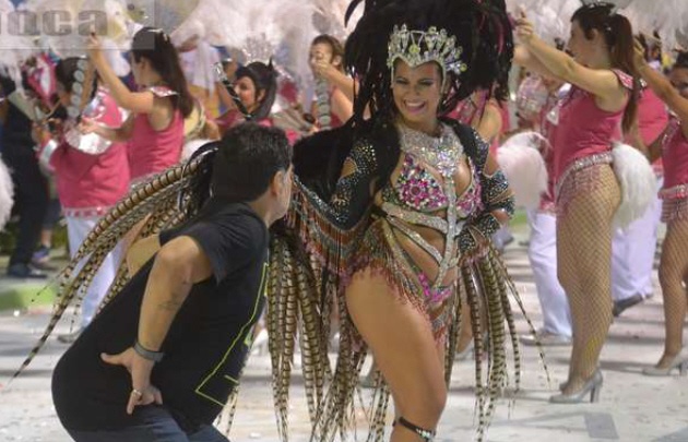 "El 10" participó de la celebridad junto a su familia en el corsódromo Nolo Arias. "La sangre tira, Corrientes es la tierra de mis padres", dijo Diego.