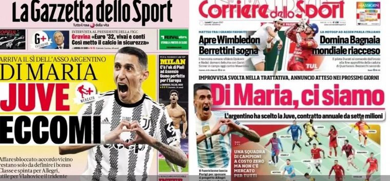 Ángel Di María finalmente sería jugador de Juventus y jugaría así en otra liga importante de Europa como la italiana, luego de hacerlo en la española y la inglesa, además de la portuguesa y recientemente la francesa, porque según el prestigioso diario La Gazzetta dello Sport el arreglo con la "Vecchia Signora" sería inminente.