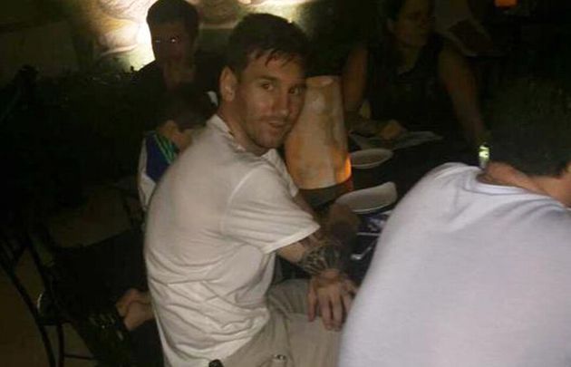 En una serie de fotografías que circuló por la web, se lo observa al crack argentino cenando y en compañía de su hijo.