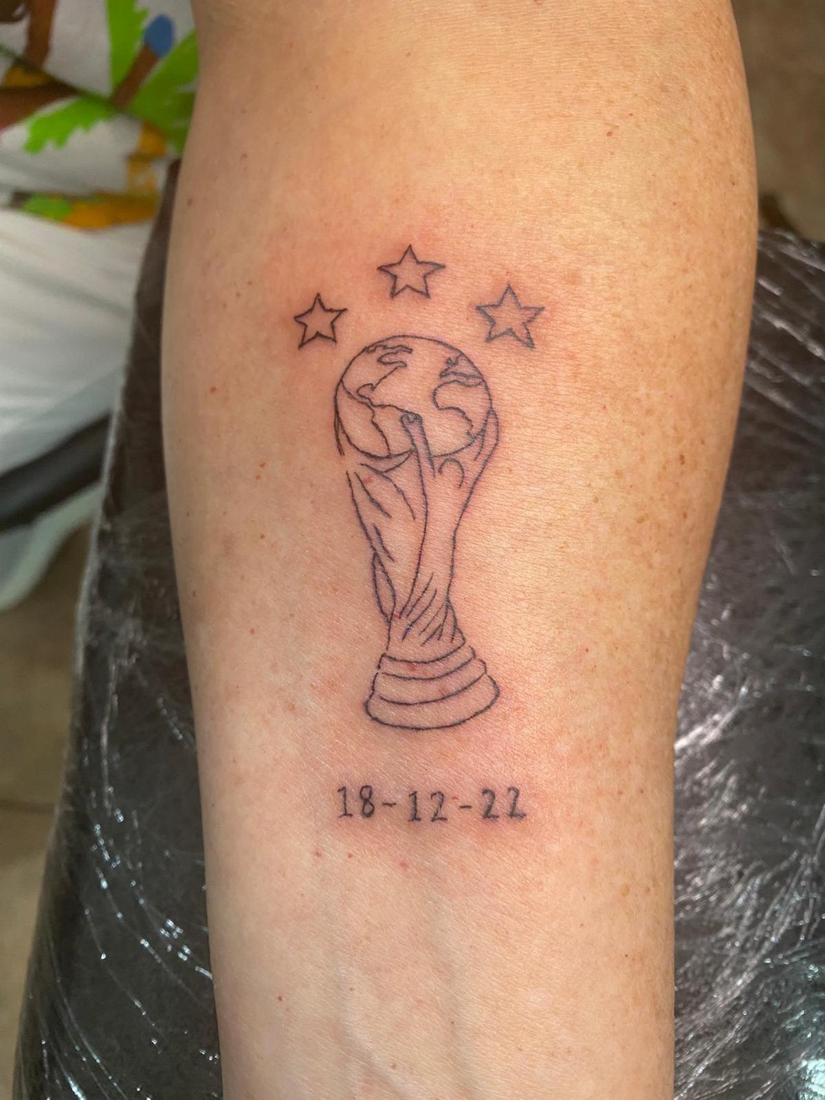 Se hizo un tatuaje de la Copa del Mundo tras la victoria de Argentina en Qatar 2022.