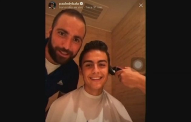 El delantero cordobés transmitió en su cuenta de Instagram su cortaba el pelo y bromeó con su compañero de ataque del elenco italiano. Mirá el video.