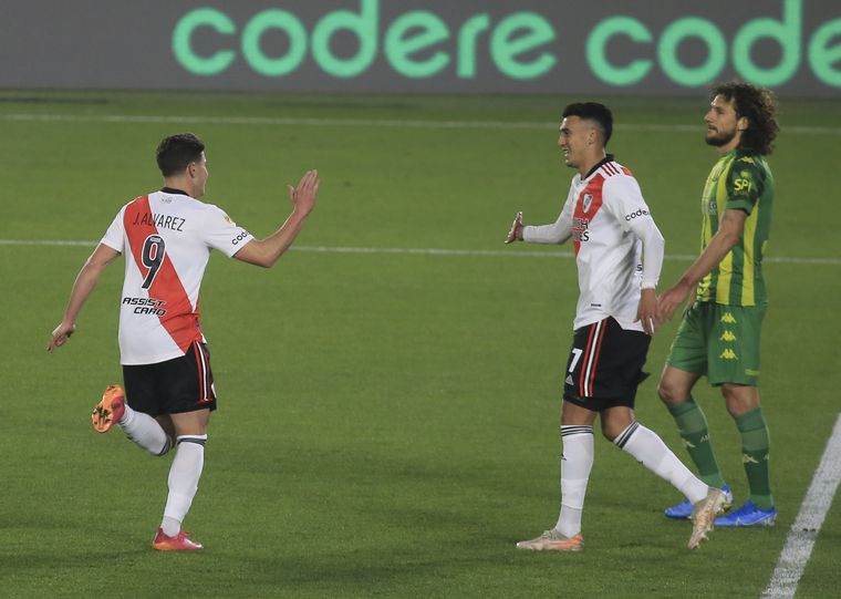 “El Millonario", que dominó ampliamente el juego desde el inicio, se puso en ventaja a los 13 minutos del primer tiempo con un bombazo de Julián Álvarez, que venció la resistencia del arquero José Devecchi.