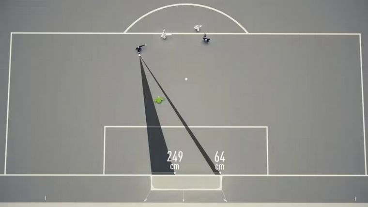 Aquí la distancia "libre" entre el arquero y los palos: