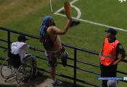 Un hincha festejó el triunfo agitando su pierna ortopédica