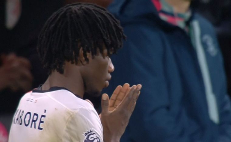 Kaboré reza por la salud de su capitán. (Captura Transmisión)