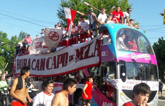 Los hinchas esperaron a los jugadores y el cuerpo técnico en el ingreso a Mendoza y los acompañaron hasta el estadio General San Martín para festejar el ascenso.