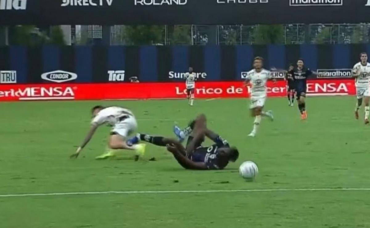 El delantero Jean Pierre Arroyo sufrió una grave lesión tras una dura entrada del argentino Brian Negro durante el partido entre Independiente del Valle y Mushuc Runa.