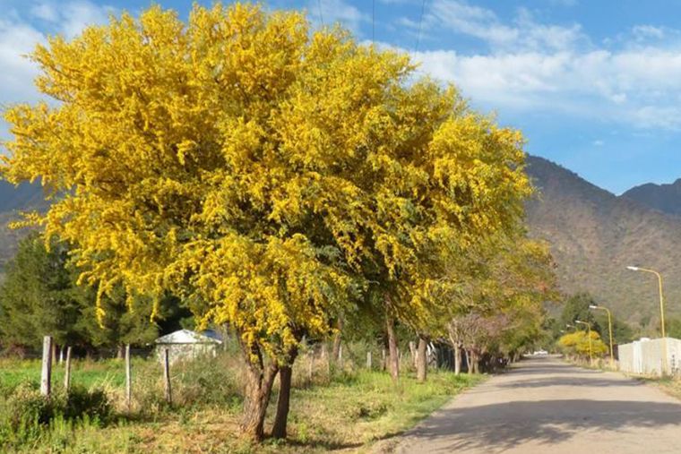 Espinillo: es un árbol de follaje caduco, muy espinoso, de corteza rugosa y color castaño oscuro. Puede medir hasta 6 metros de altura o comportarse como un arbusto ramificado desde su base. Florece a principios de primavera y fructifica en verano y otoño. Se reproduce fácilmente por semillas.