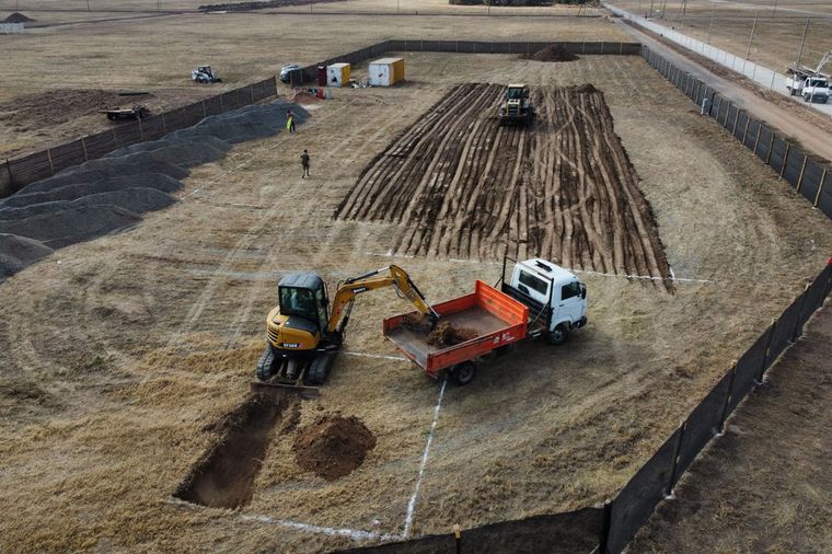 Actualmente, se está avanzando en el replanteo de la platea fundacional, para continuar luego con el hormigonado y el posterior montaje de la estructura de steel framing que conformará el edificio educativo.