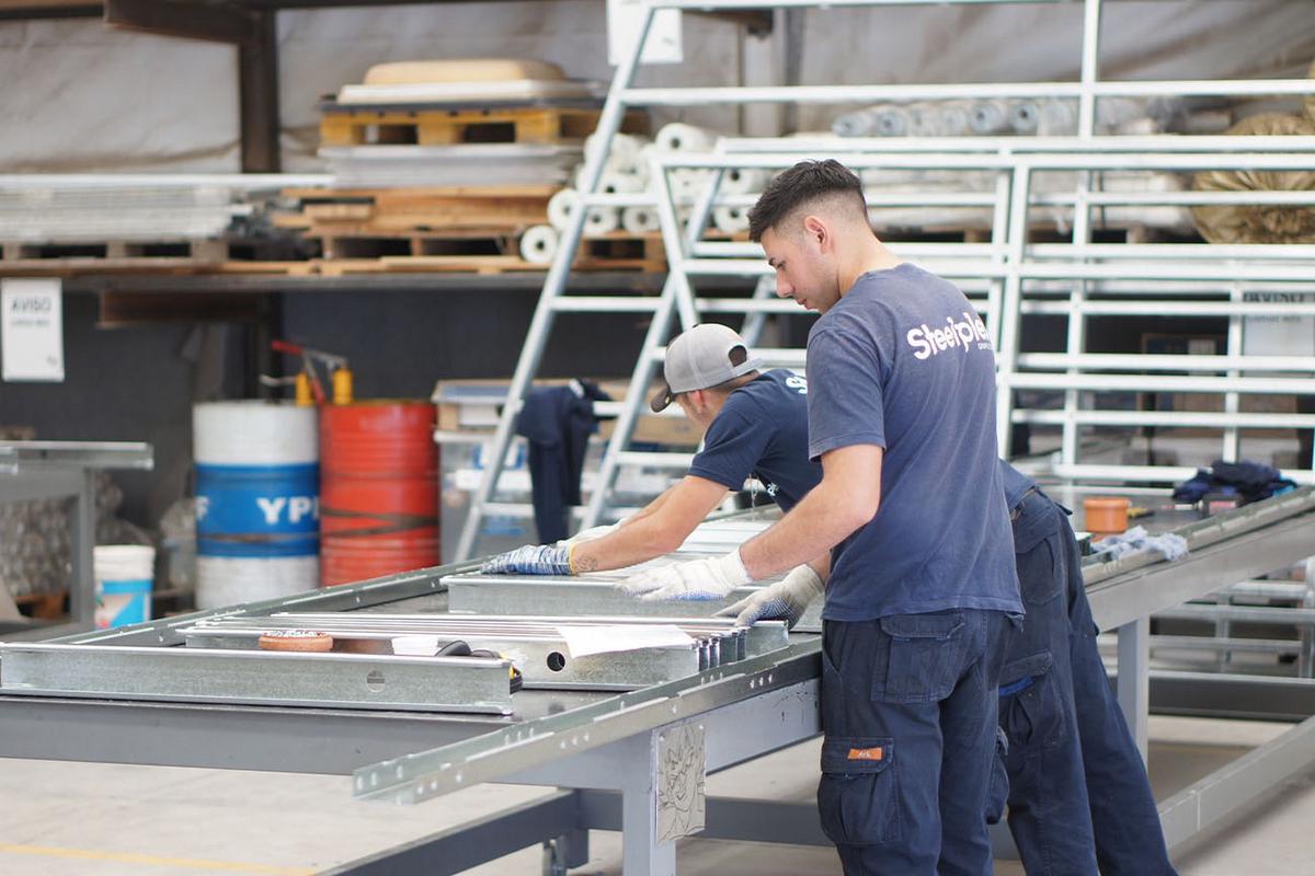 Acto seguido, inicia el proceso de fabricación de los paneles. Esto implica el corte de perfiles y placas, el marcado para la fijación y rigidización, etc.