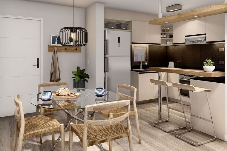 Los departamentos dispondrán de piso de porcelanato e instalación para aire acondicionado en estar comedor y dormitorios.