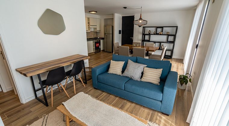 El interior de los departamentos fue diseñado bajo el concepto de espacios integrados, para maximizar y optimizar el aprovechamiento de los metros cuadrados, según las necesidades de sus habitantes. Living, comedor y cocina se conectan para crear un área moderna, cómoda y funcional. Esta sensación de amplitud se refuerza aún más por las paletas claras utilizadas en los muros.