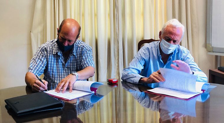 Fernando Reyna, socio de Grupo Edisur, y Esteban Rouviere, presidente de Ateneo Juventus, firmaron el convenio para la construcción de la sede San Francisco. Foto: Grupo Edisur.
