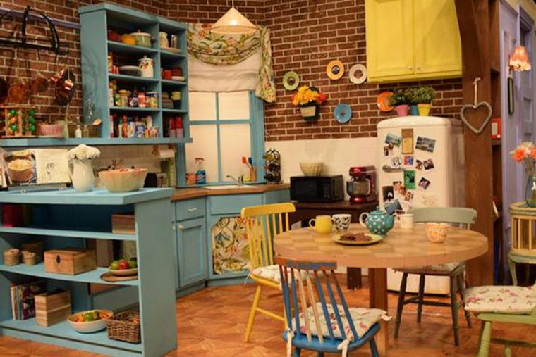 Tomando en cuenta que el personaje era de profesión chef, la cocina de su apartamento cobra mucho protagonismo, sobre todo los electrodomésticos, como la heladera de estilo retro verde agua, o la mesada de madera y estanterías abiertas que dan vida al espacio.