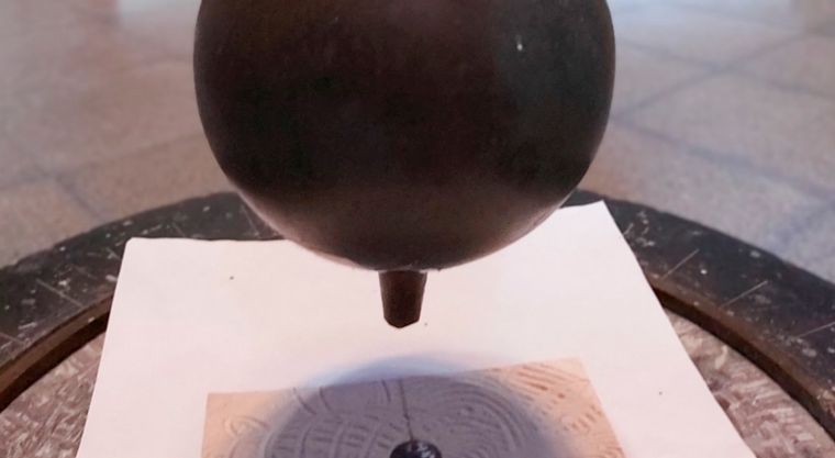 Desde el techo de la capilla cuelgan tres péndulos, entre ellos el de Foucault, que solía utilizarse para detectar los movimientos sísmicos (Grupo Edisur).