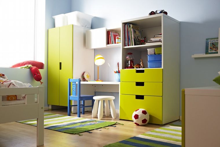 Hay que pensar en un sistema flexible, que se adapte al estilo del dormitorio y que permita ampliarlo conforme vayan creciendo. Como recurso decorativo e individualizador, se pueden utilizar los colores para separar.