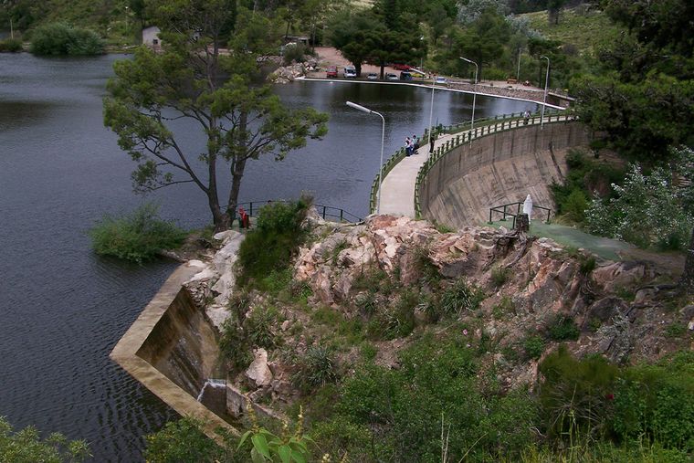 Inaugurado en 1942, se consagró como el primero con forma de arco de Sudamérica. El paredón confluye alrededor de dos arroyos (El Peral y Los Berros) para abastecer de agua potable a la localidad vecina.