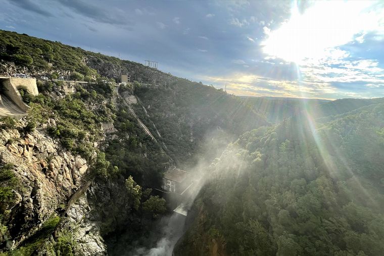 El paisaje que se observa al pararse sobre el muro del Dique La Viña es digno de las grandes películas de ciencia ficción. El imponente chorro de agua cayendo sobre las rocas erosionadas, la central hidroeléctrica bajo toda la estructura, los colores de la naturaleza y un pintoresco puente colgante de madera en medio, forman lo que bien podría ser una escena sacada de Avatar o algún film similar.