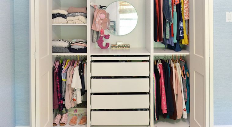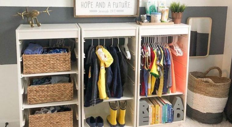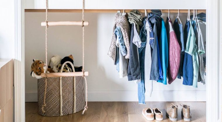 Se trata de convertir el vestidor en algo suyo. Por eso, es imprescindible adaptarlo a su altura y dotarlo de espacios que permitan identificar con claridad el lugar que ocupan sus pertenencias. Sumarle una decoración infantil será el broche de oro perfecto.