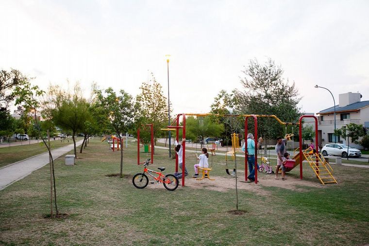 Las plazas funcionan como corazones verdes públicos y un lugar de encuentro para los vecinos de Manantiales.