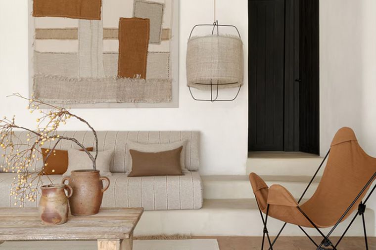 Por ejemplo, están muy de moda las telas con finísimas rayas que rompen la neutralidad de tonos como el topo, sin crear estampas demasiado marcadas. Esta opción es ideal para los que buscan una decoración minimalista y slow.