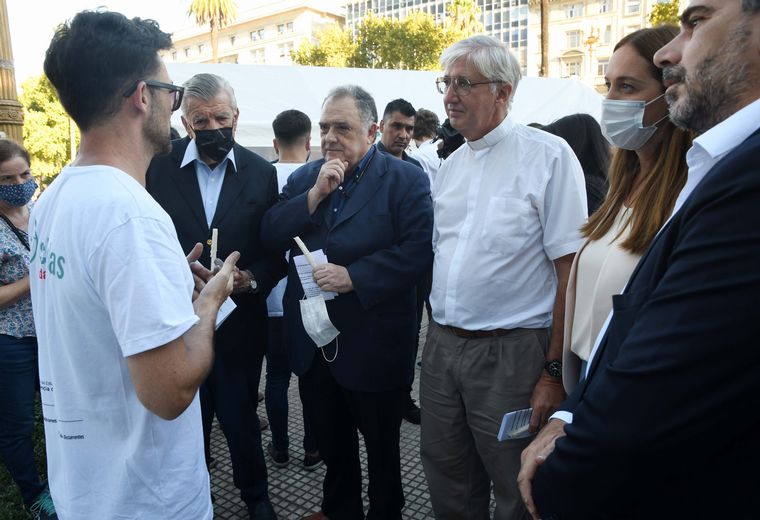 En el encuentro, donde participaron organizaciones religiosas y sociales, se levantó una carpa blanca al lado el árbol de olivo plantado por el Papa Francisco en el año 2000, cuando era arzobispo de la Ciudad de Buenos Aires.