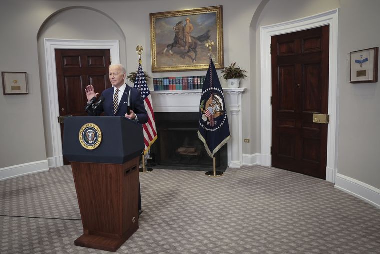 "Hoy anuncio que Estados Unidos apuntará a la principal arteria de la economía de Rusia. Vamos a prohibir todas las importaciones de petróleo, gas y energía rusas", dijo Biden en la Casa Blanca.
