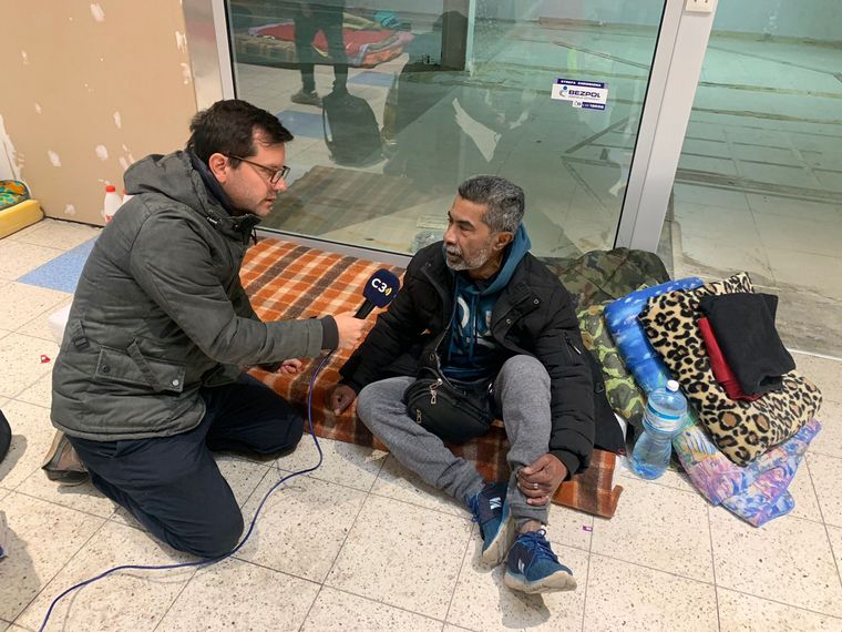 Pasó toda la noche en el centro de acopio de Polonia y piensa irse apenas logre reencontrarse con su hermano.