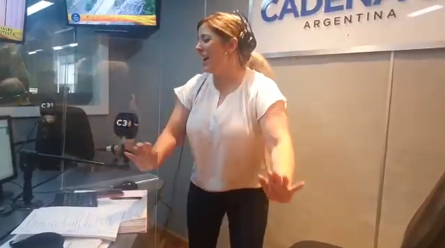 El conductor de Viva la Radio, Raúl Monti, filmó a su compañera de sorpresa mientras bailaba al ritmo de "De reversa, mami". Entrá y mirá.
