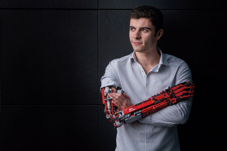 A los 18 años con piezas de Lego (los famosos juguetes con formas de ladrillitos para encastrar) fabricó su primera prótesis, a la que llamó MK1, porque guardaba características similares al brazo de Iron Man.
