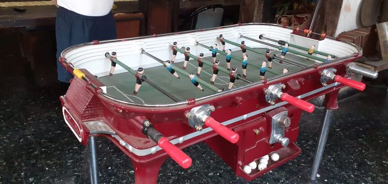 Los primeros metegoles del país eran de madera y García, a demanda de los bares, comenzó a fabricar metegoles de fundición.