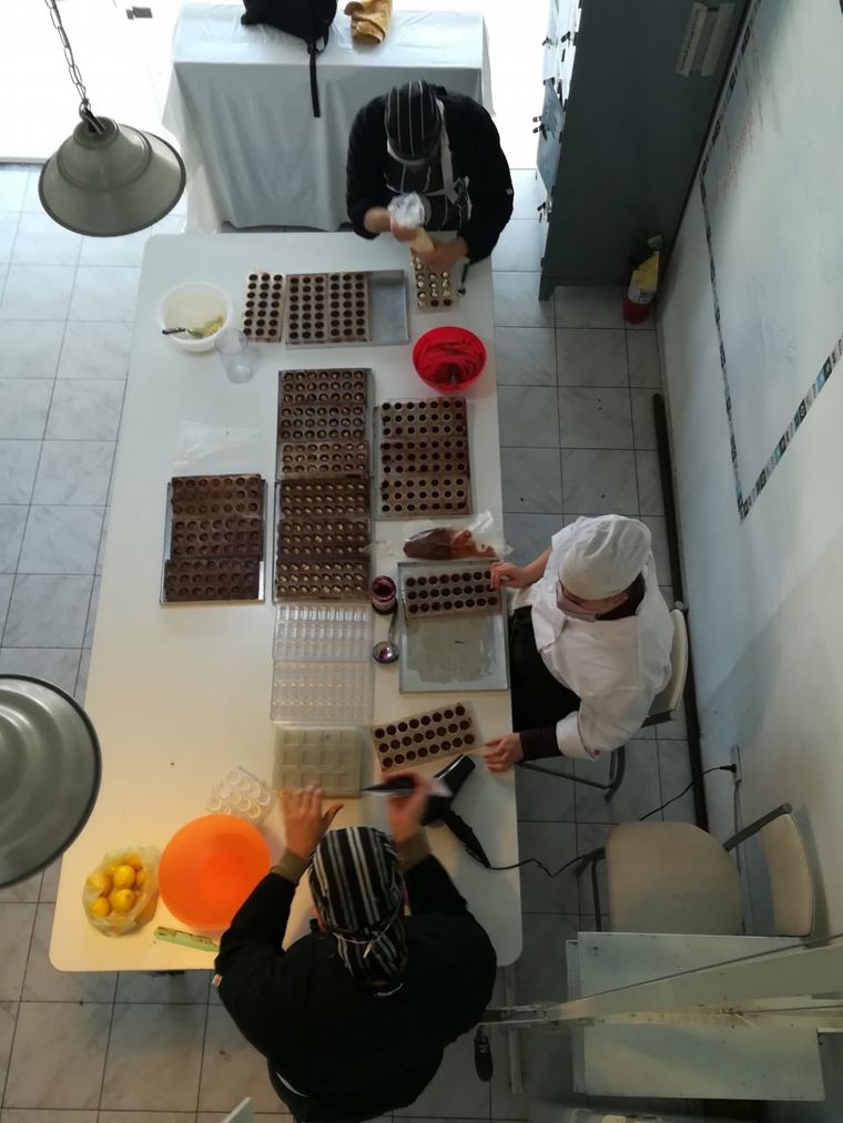8cholate comenzó con ocho jóvenes con discapacidad, pero a raíz de la pandemia y para poder resguardar su salud, en la actualidad hay cuatro personas trabajando junto a dos tutores que se encuentran en la parte de producción y packaging.