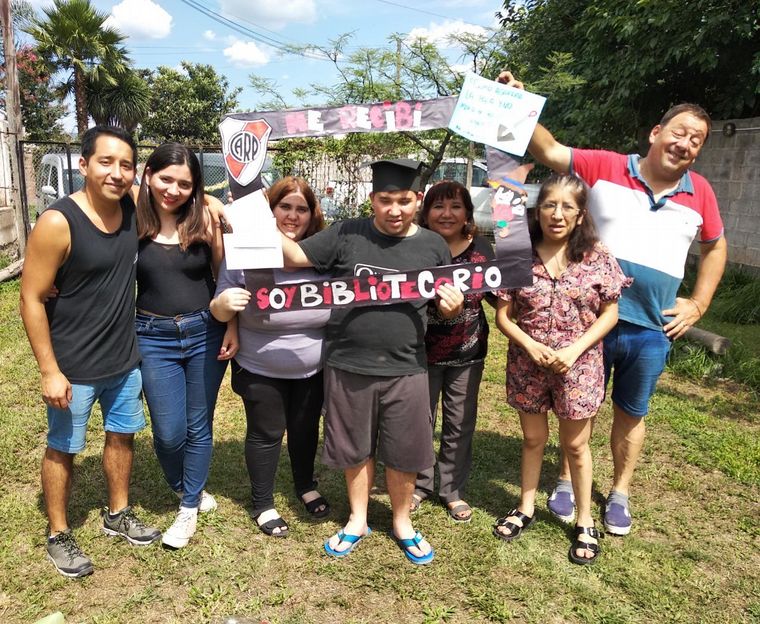 Javier Beluardi tiene 27 años, nació con retraso madurativo, déficit de atención e hiperactividad, y junto a su familia celebró su flamante nuevo título como Técnico Superior en Bibliotecología y Ciencias de la Información.