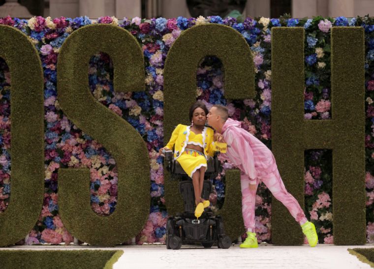 Aaron Rose Philip se convirtió la semana pasada en la primera modelo trans y con discapacidad en desfilar alta costura en la Semana de la Moda. Lo hizo de la mano de la firma Moschino.