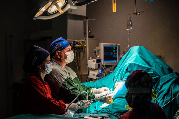 Dr. Mario Bustos, en cirugía simpaticectomía videotoracoscopia.