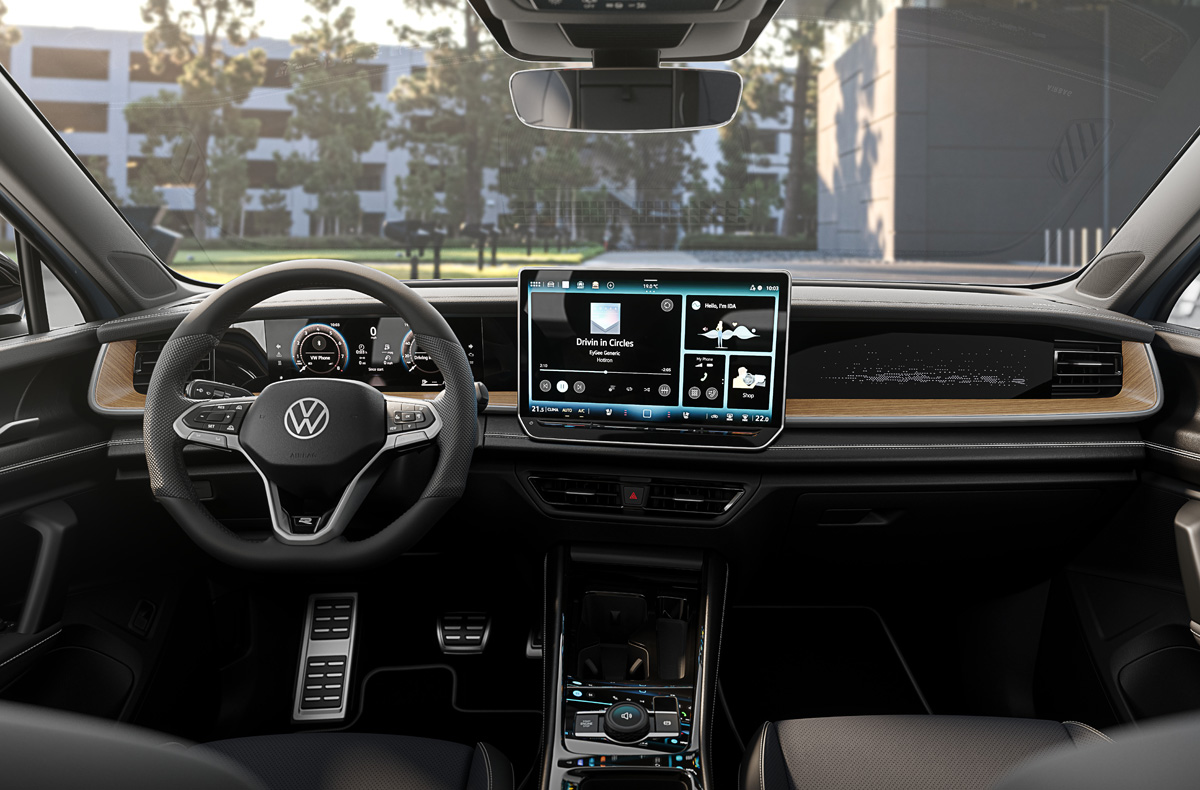 En su interior cuenta con techo panorámico, tapizados en cuero perforado. Las butacas delanteras tienen regulación eléctrica con memoria y están equipados con ventilación, calefacción y masajes con 10 funciones. El cockpit con insertos “R-Line” retroiluminados, “Head-up Display” que proyecta información del tablero en el parabrisas, molduras R-Line en zócalo de puertas delanteras de ingreso al habitáculo, pedalera con apliques símil aluminio y consola central “R-Line”.