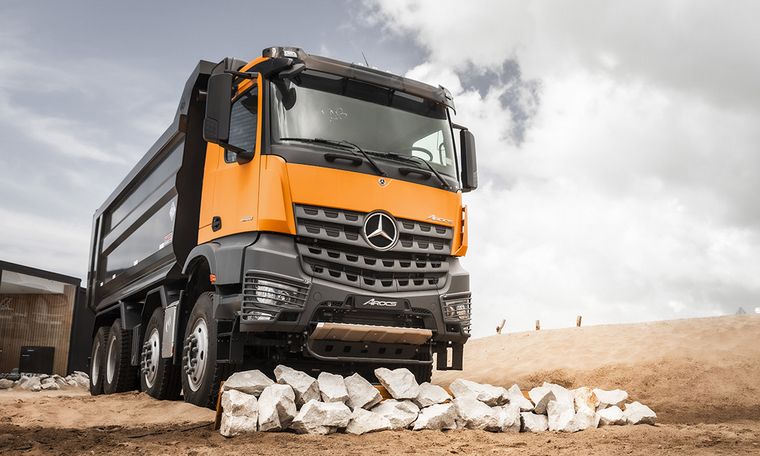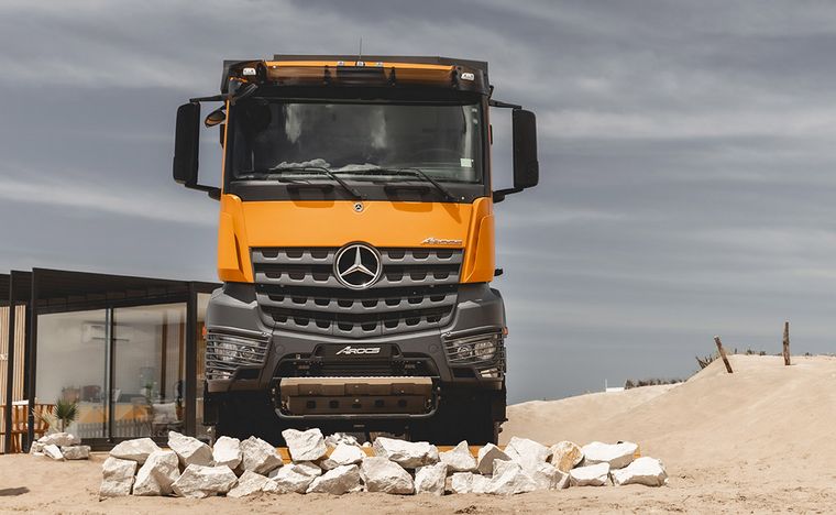 La robustez y aptitudes fuera de ruta del Arocs residen en su chasis con un ángulo de ataque y salida de 30 grados, mejorías en los despejes respecto al suelo, con vano libre en el eje delantero de 455 mm, características que le permiten transitar y maniobrar sin problema en terrenos difíciles. Con un peso bruto de 48 toneladas, este camión ofrece una carga útil máxima de 36,1 toneladas.
